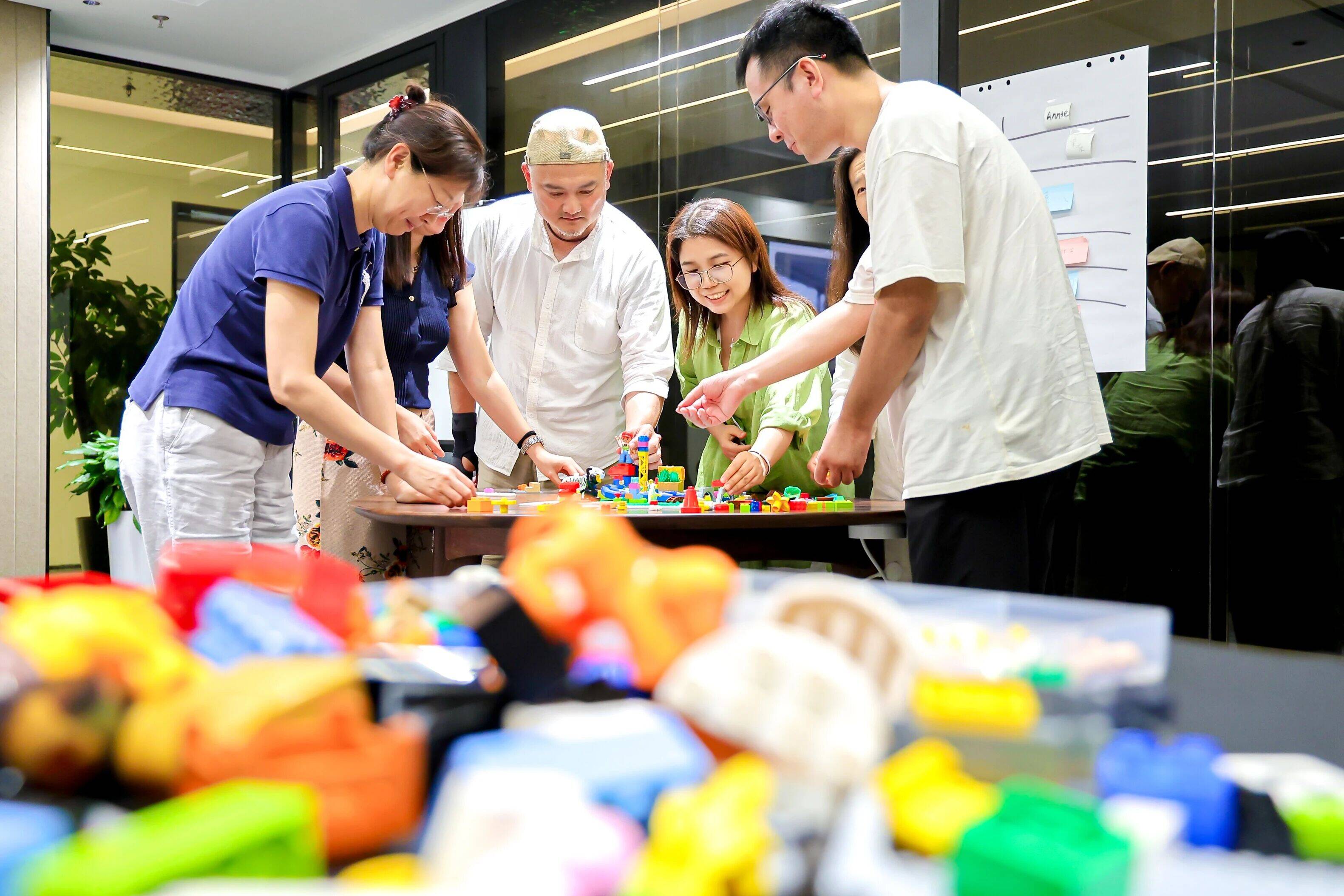 乐高工作法会邀请每位参与者用乐高积木搭建模型,3D展现自己的想法和观点,通过讲解模型的故事,与他人分享自己的洞察。